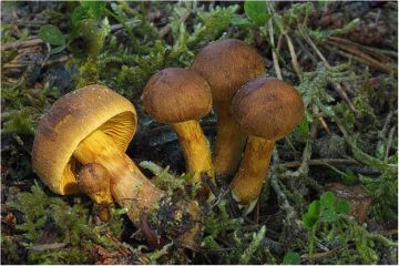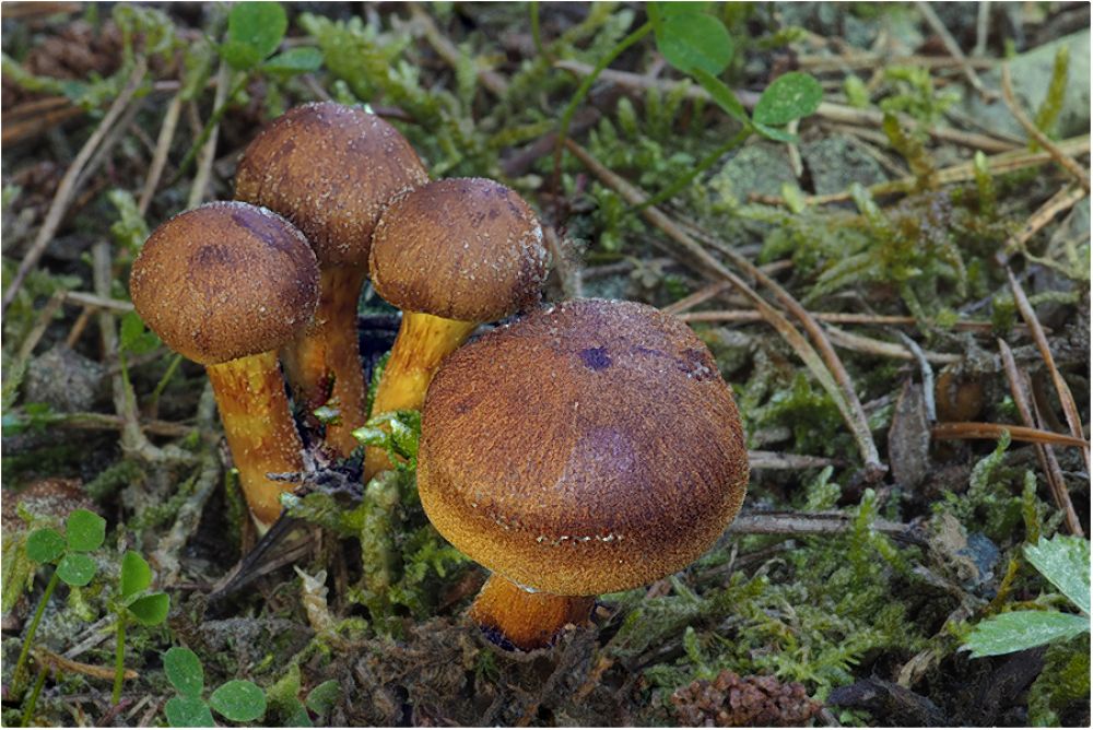 Na lokalitách růstu kačenek je často hojný pavučinec jarní, červenohnědý (Cortinarius vernus)