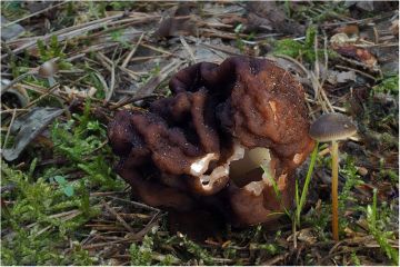 Hnědouhelná výsypka, pod borovicemi - chřapáč běločerný (Helvella leucomelaena)