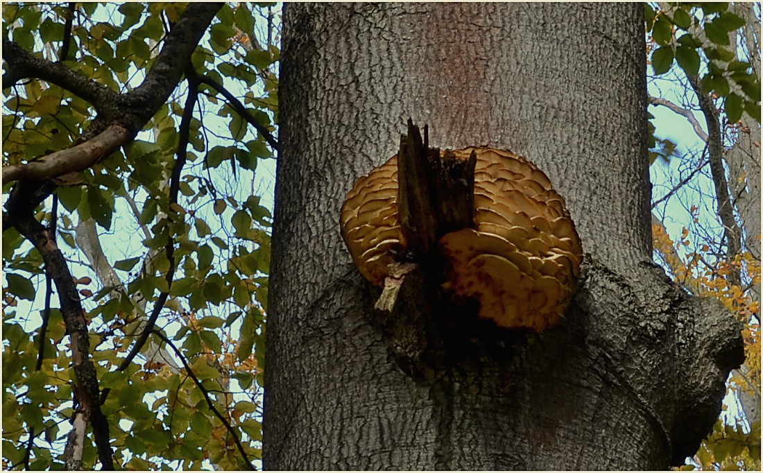 Na statném buku ale asi 15 metrů vysoko na nás shlížel šindelovník severský (Climacodon septentrionalis). I tak radost veliká.