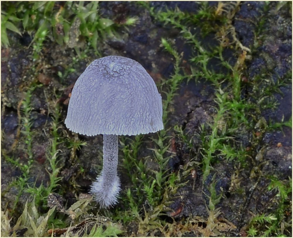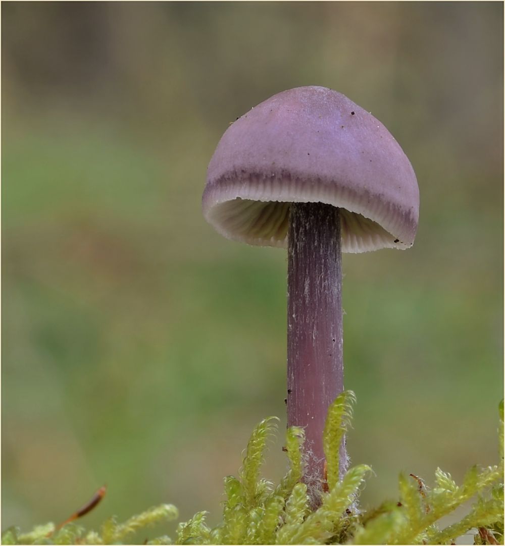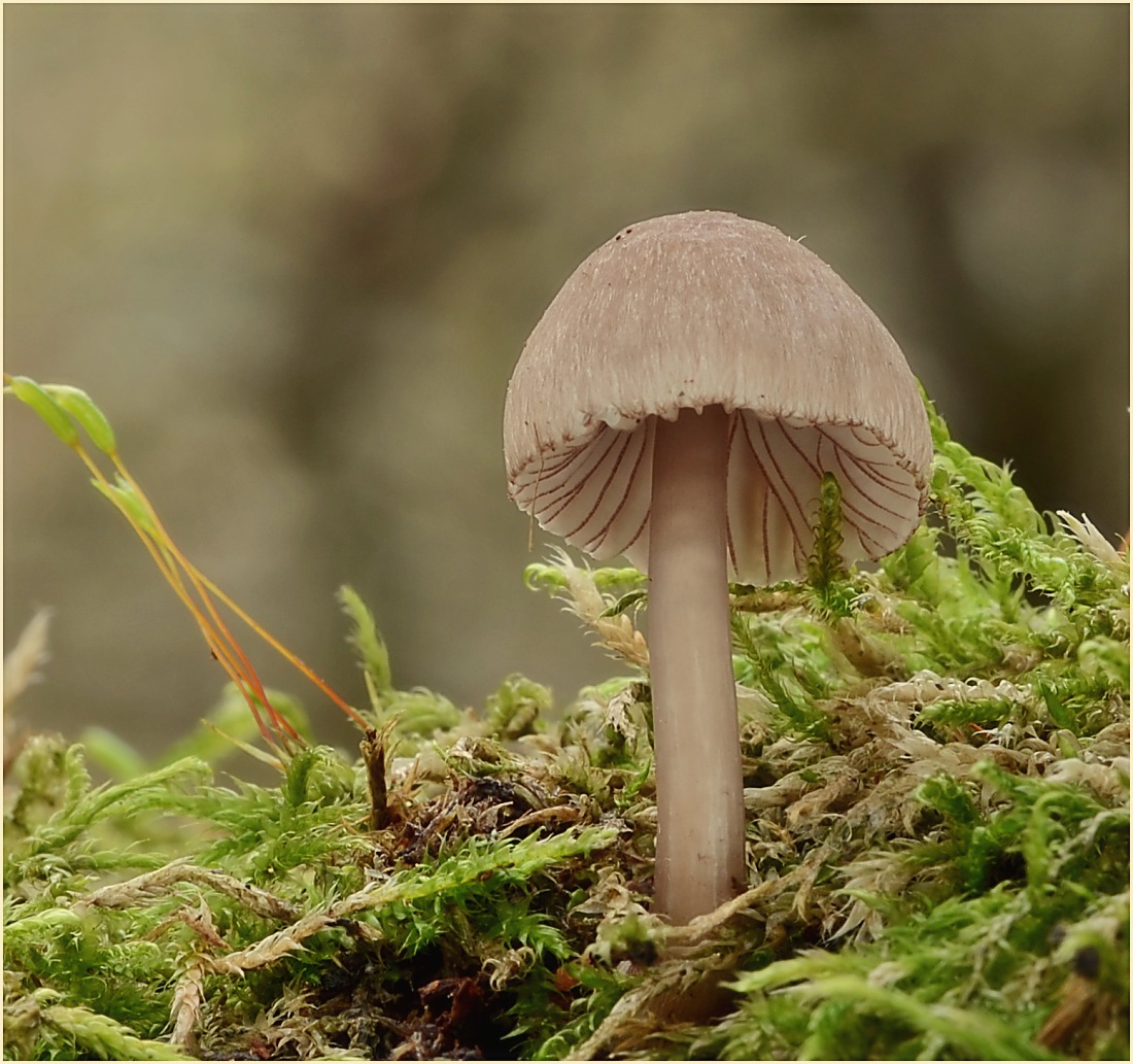 Ve vlhké vrbině se našla helmovka červenobřitá (Mycena rubromarginata).