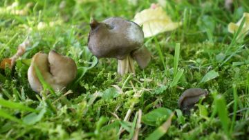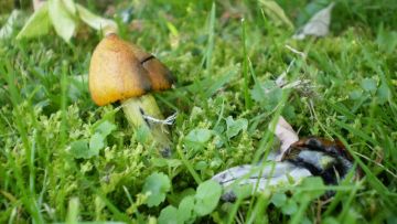 dalším nálezem bylo několik vajíček břichatkovitých hub v trochu zastiněnější bučině, myslím že to byl phallus impeditus, ale je možné že to byly vajíčka psivky. půjdu tam ale až v pátek abych vyfotil dospělé houby. pak se uvidí. posledním nálezem byla tato zajímavá houba nalezena v trávě pod ořechem, neměl jsem foták takže fotka je aranžována o několik hodin později. nevíte někdo co to je?