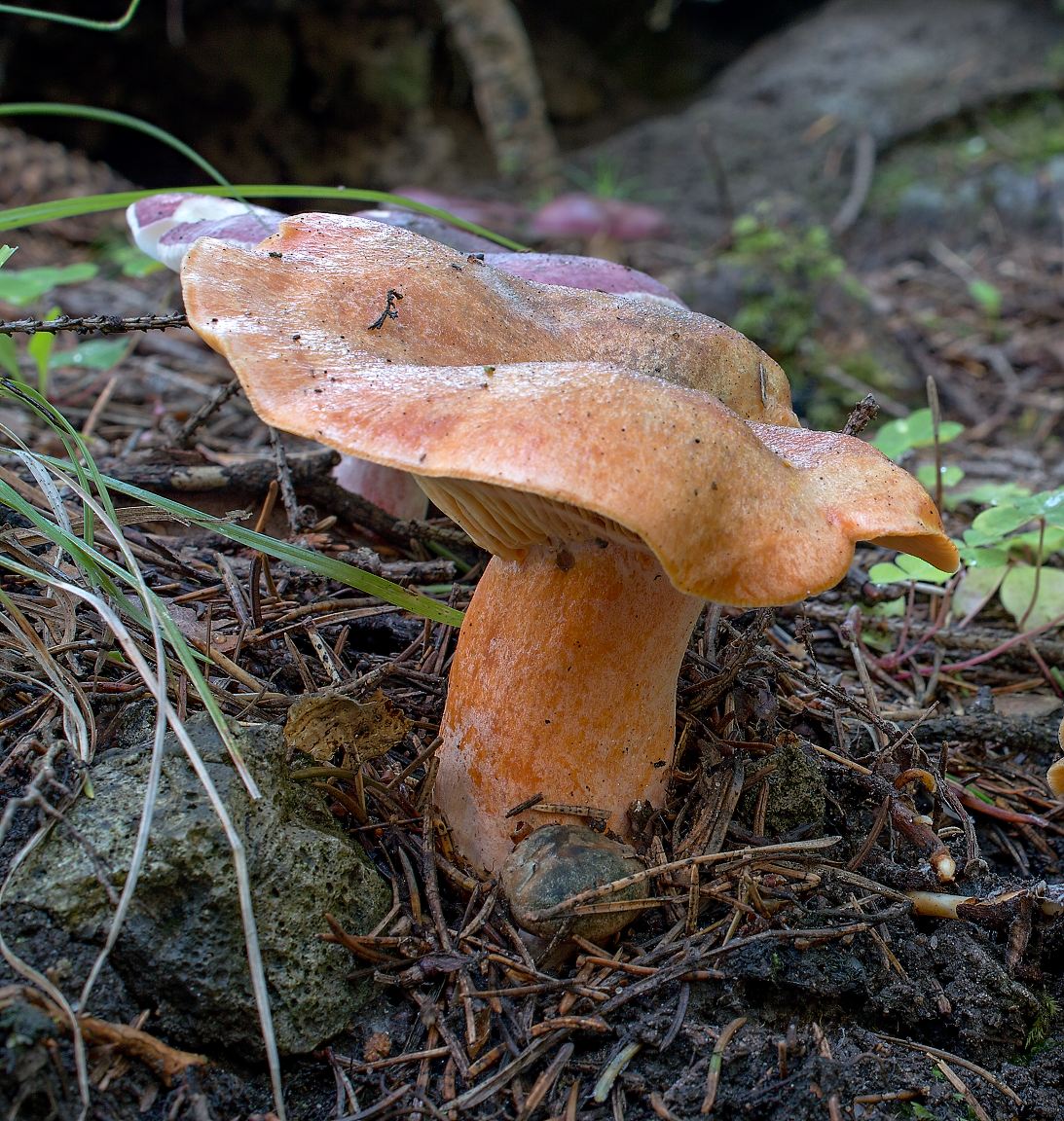 Poměrně hojný ryzec hnědý - Lactarius helvus. Typická houba horských a podhorských mechových či rašeliníkových smrčin. Jeden z mála jedovatých ryzců, který naopak žádné mléko neroní a pokud ano, tak čiré jako voda.