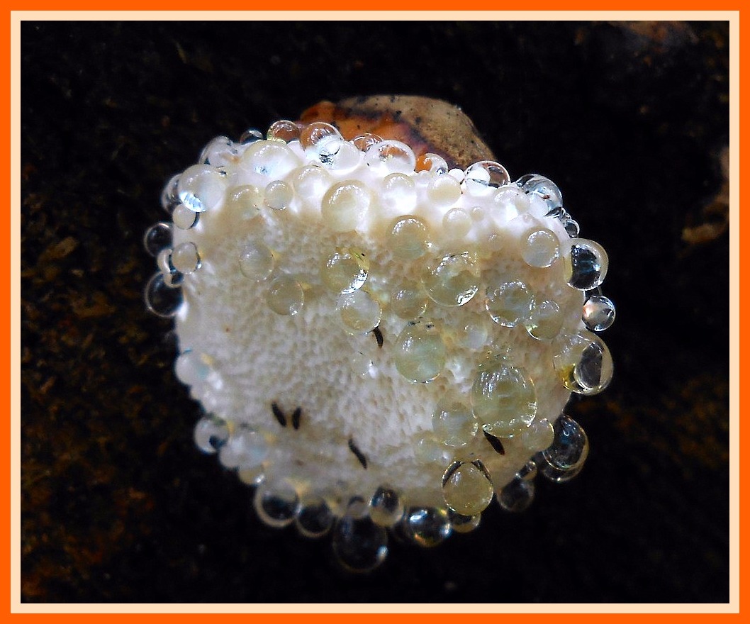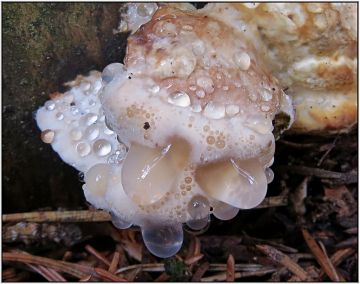 3. Outkovka polní (Dichomitus campestris) - Našel jsem ji minulé pondělí. Je to poměrně vzácná chorošovitá houba rostoucí na dřevě listnáčů, nejčastěji lísek. Význačná tím, že její plodnice od místa připojení k substrátu často černají. Barvu rourek může mít v závislosti na věku různou - nejdříve bělavě nažloutlou, béžovou, naoranžovělou, červenavou, rezavou až černou. Zařazena v Červeném seznamu v kategorii NT (téměř ohrožený druh).