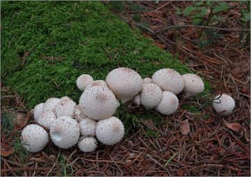 ... hromada klestí porostlá mechem a na ní límcovky měděnkové