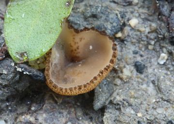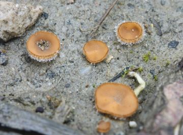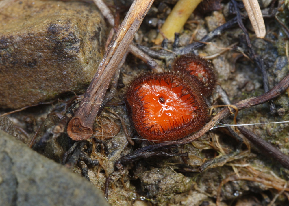 A na konec nemůže chybět kosmatka, tentokrát k. drsnovýtrusá (Scutellinia trechispora) z příkopu u lesní silnice. Jedna z hodně vlhkomilných kosmatek, chlupy může mít až 2 mm dlouhé, poznávací znamení - kulovité výtrusy s uťatou konickou ornamentikou.