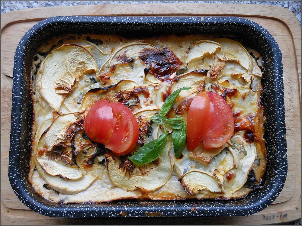 Zrovna jako tady, jsou ukryty pod těmi cuketami, moje milovaná choť zase experimentovala...
