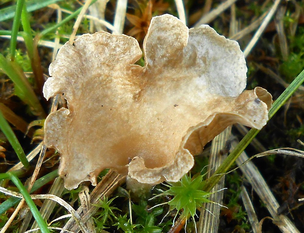 Hned při stěhování do penzionu (Kunc II.) jsem u cesty v mechu natrefil na svůj první sobotní prvonález - mecháček, zjevně lopatkovitý (Arrhenia spathulata).