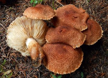 Na obdobných místech též v hojném počtu se dala najít čirůvka kravská (Tricholoma vaccinum).