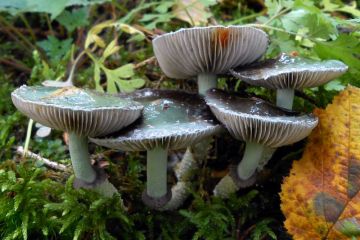 Skupinka límcovek měděnkových (Stropharia aeruginosa).