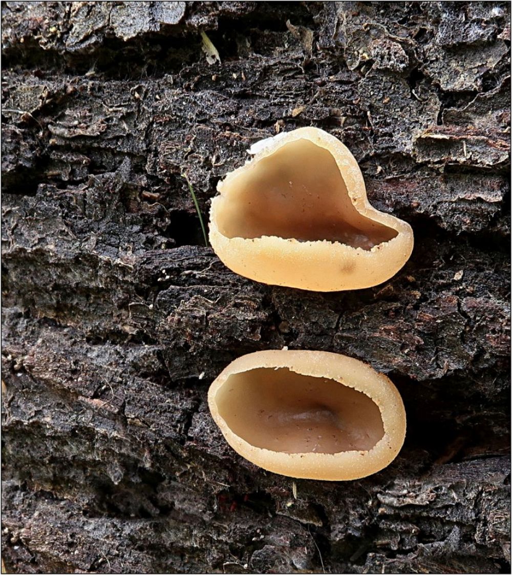 ... když už jsem tam byla, tak jsem se koukla okolo. V jabloňovém sadu na poraženém kmeni nějaká řasnatka (?)