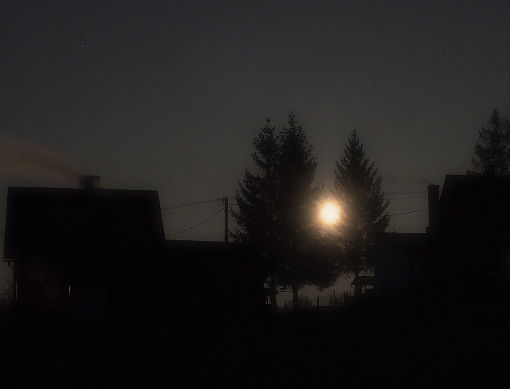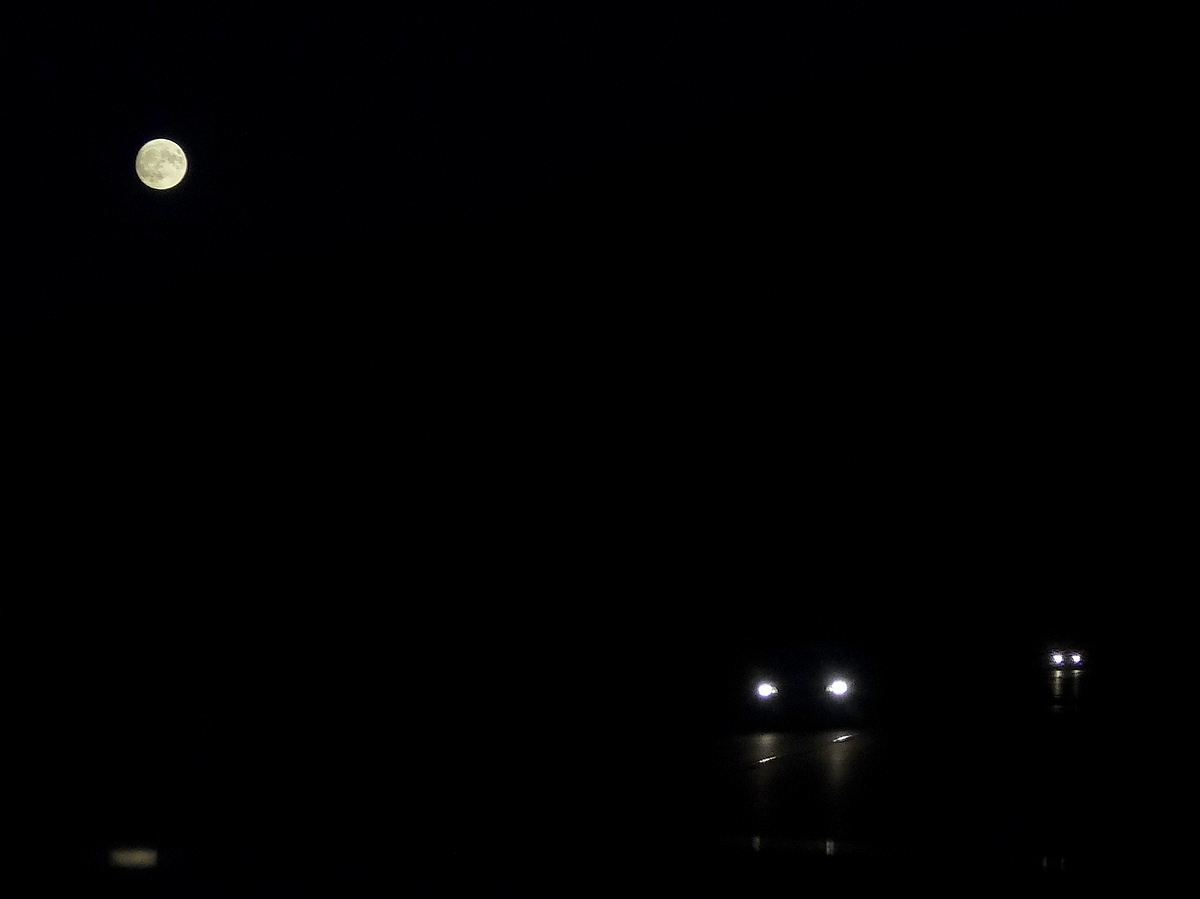 Jel jsem zrovna domů a těsně nad obzorem nad kopci svítil obrovský bledý měsíc. Bohužel se ale zrovna nedalo zastavit. A při nejbližší příležitosti už byl normální a mezitím se setmělo. Mám i kouli přes celý monitor, ale to fotí všici...