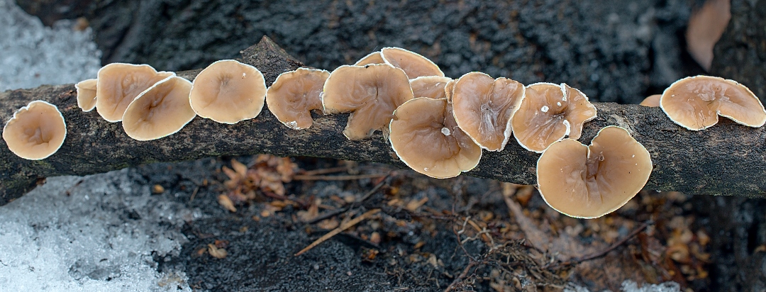 Hlívy dneska byly jen co nepřežily mrazy a maličké, ten trsík měl jen centimetr.