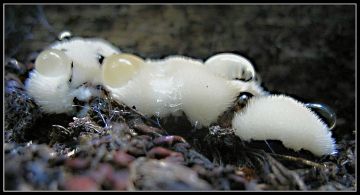 ...mladý bělochoroš pýchavkovitý na zlomeném stromě...