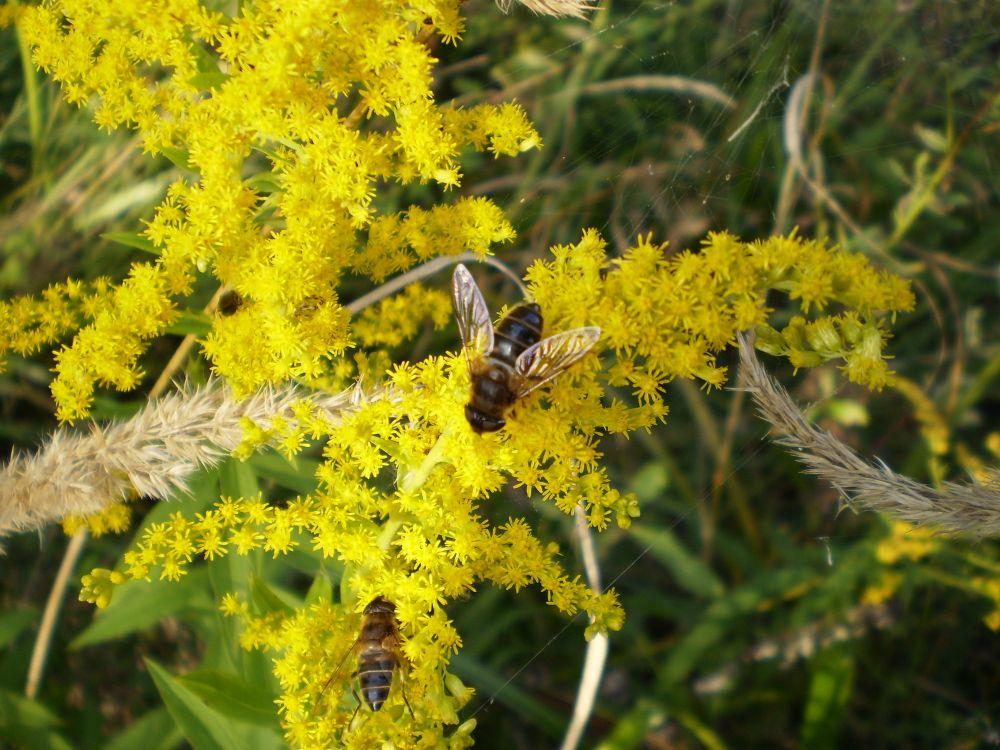 a tady drobné pestřenky eristalis pertinax / asi 1cm/