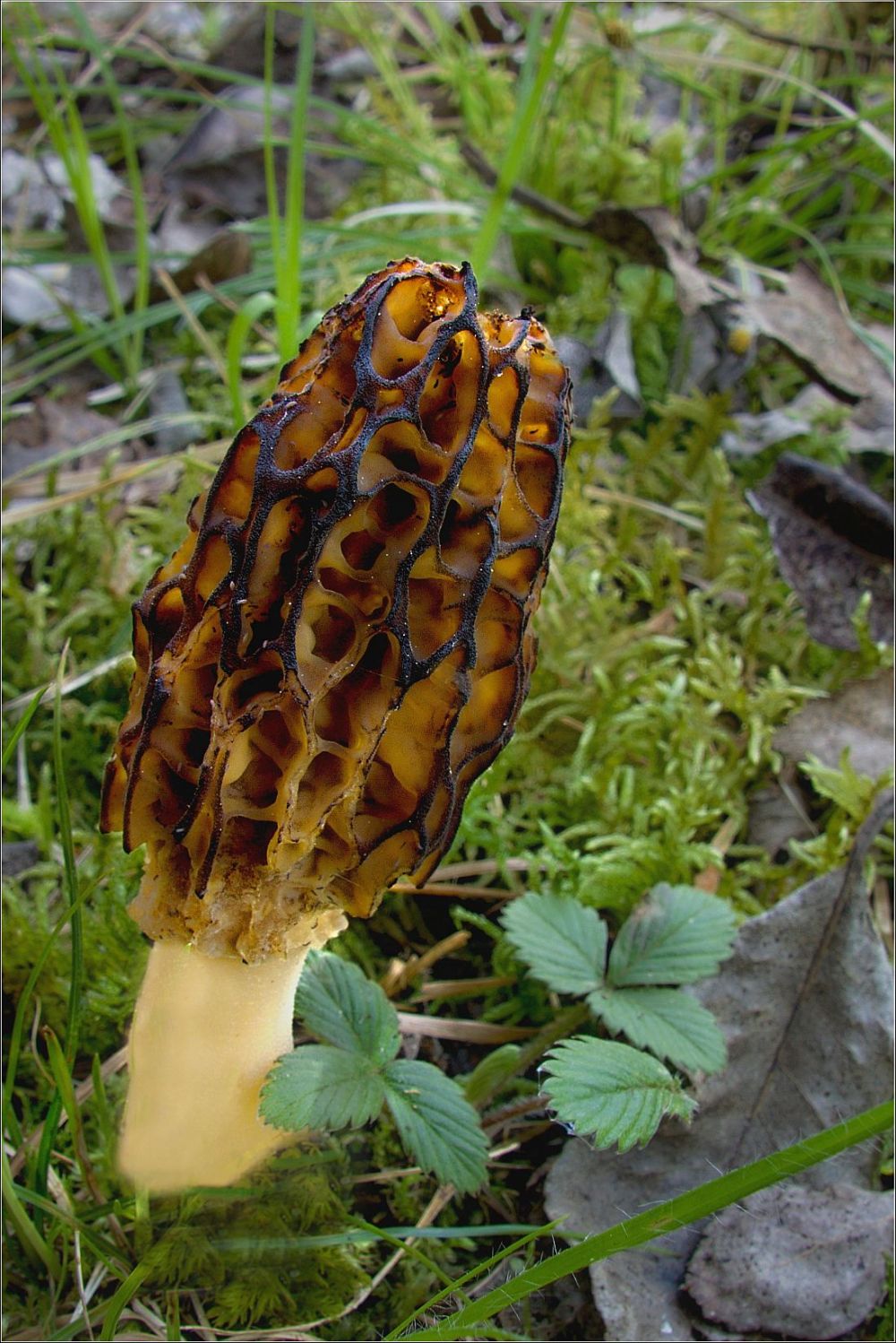 Když jsem dofotila a vše sbalila, že pojedem domů, vykoukl na mě po cestě k autu tento smrž kuželovitý. Opět jsem našla pouze 1 plodnici.