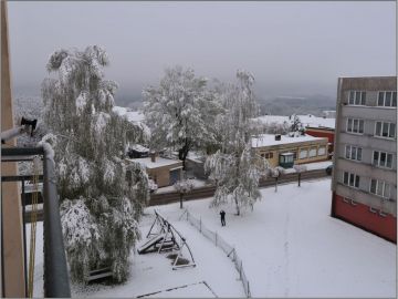 Ranní pohled z balkonu, sněhovou nadílku jsem si nefotila jen já