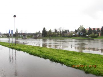 U nás bylo ráno málo sněhu, ale nebezpečně se plní řeka a stále prší