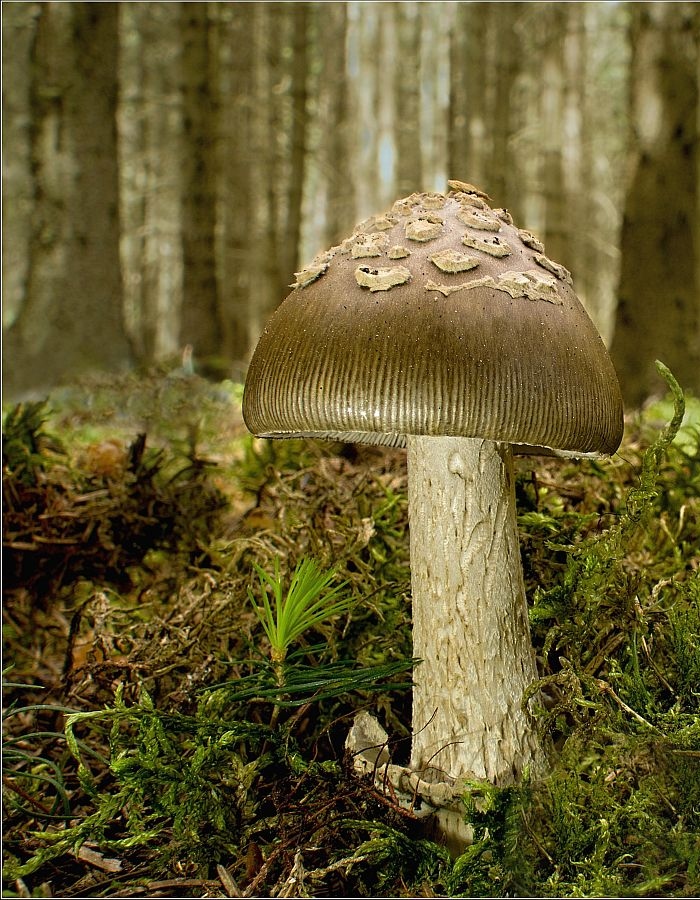 ... umístila jsem houbu na pravou stranu. Nazvednutý klobouk a šikmá strana třeně míří do fotky.