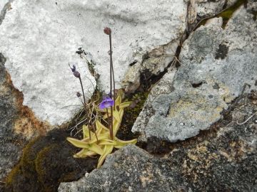 Na pobřeží v rozlehlých skalkách mě zaujal hojný výskyt příležitostní masožravky Tučnice obecné(Pinguicula vulgaris),v ČR C2t.