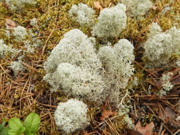 Volné prostory mezi dominantními rostlinami břízou a jalovcem doplňoval ještě lišejník Dutohlávka horská(Cladonia stellaris).
