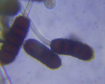 Díky za doplňující informace. Ty aeciospory a uredospory by měly být zase ty oranžové skvrny na listech. Neodvážil jsem se napsat teliospory, protože jsem se domníval, že teliospory jsou obvykle dvoubuněčné, zde právě mají 3 nebo 4 přehrádky. Jinak u těch výtrusů jsem opravdu naměřil cca 70-100 x 30 µm.