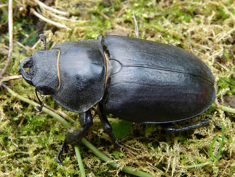 místo kvízu jsem „musela“ jít na pívo. ;) To je tak, když jedna míní a hlava rodiny mění. Normálka do hospody foťák nenosím, ale v minulosti jsem tam natrefila na vějířovce, tak jsem si řekla „co kdyby“. Vyšli jsme z domu a hned pic kozu do vazu. Uprostřed frekventované cesty ušmudlaná pachtící se samička roháče obecného (aspoň doufám, že je to ona, viděla jsem ji fakt poprvé). Tož jsme na chvíli zastavili dopravu a začali se záchrannou akcí přenosu do trávy.