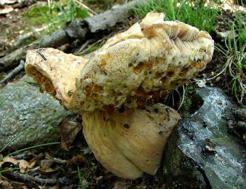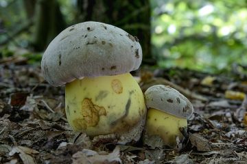 A na poslední chvíli těsně před příchodem k autu a na stejném místě jako před 3 týdny dvojice hřibů medotrpkých. Už při ostření jsem si všiml, že i hřib dokáže gutovat, sice málo, ale umí