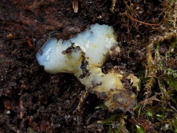 Zastavil jsem se u pařezu, kde jsem minule našel tento diskomycet, který mi Tori určila jako rod Peltigeromyces, za což jí moc děkuji. Objevil jsem ještě jednu, relativně mladou plodnici, která byla schovaná pod mechem.