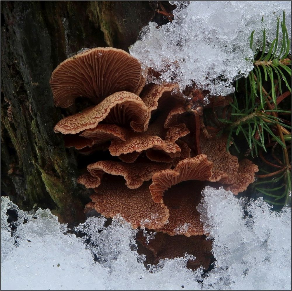V prosinci jsem našla pařezník obecný se stejnou strukturou klobouku a mám tam pohled na lupeny