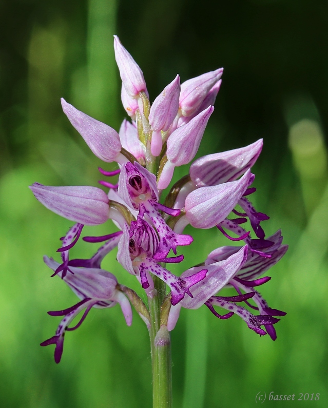 Vstavač vojenský - byl jsem tam ráno v devět hodin a to bylo už pozdě. Sluníčko a vítr dělaly potíže. Našel jsem si rostlinu pod stromem alespoň trochu ve stínu a nacvakal asi dvacet fotek, abych měl jistotu, že alespoň nějaká nebude rozmazaná. Tato je asi nejostřejší z těch rozmazaných