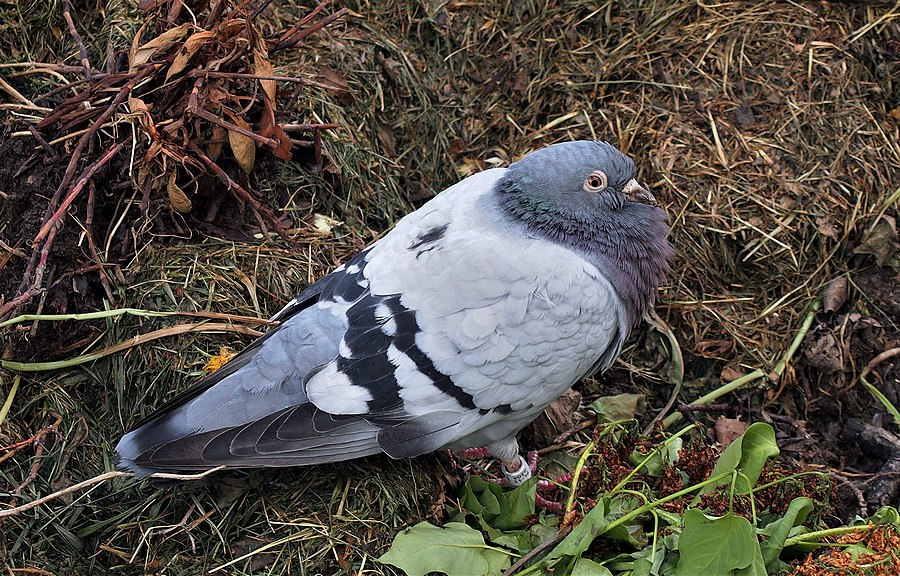 Mně se při focení vodniček procházel po kompostu unavený holub.Nechal se fotit ze dvou metrů.