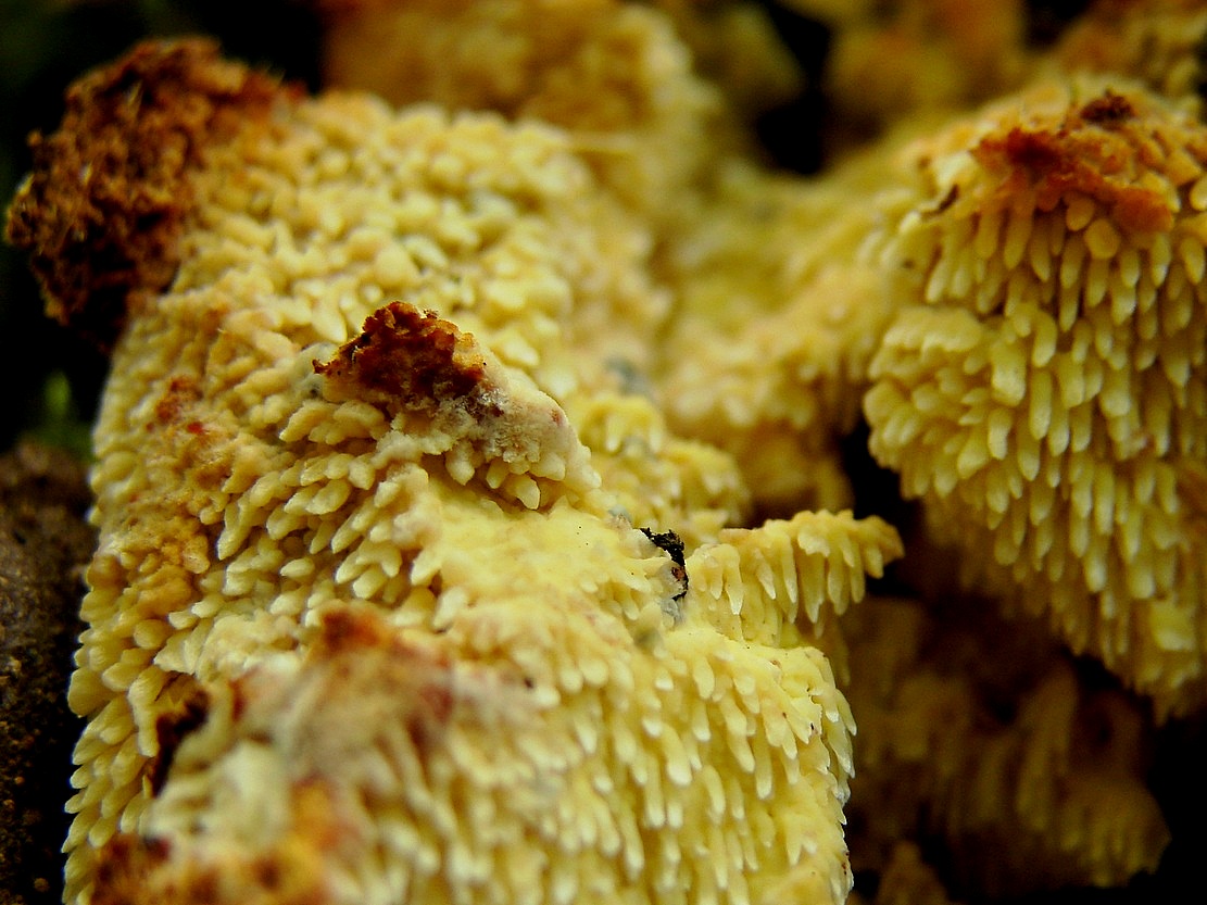 Protože mimo sírovců tu nic neroste, místo chození do lesa teď denně podnikám vyjížďky na kole. Dnes jsem si zajel do mého dnes již neexistujícího rodiště a když jsem míjel usychající jabloň bez listí, zachytil jsem koutkem oka žlutou barvu. Vrátil jsem se a spatřil tuhle už na první pohled nevšední houbu.