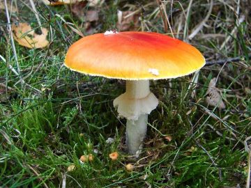 Muchomůrka červená. Čerstvá, ale bez svých ozdob.