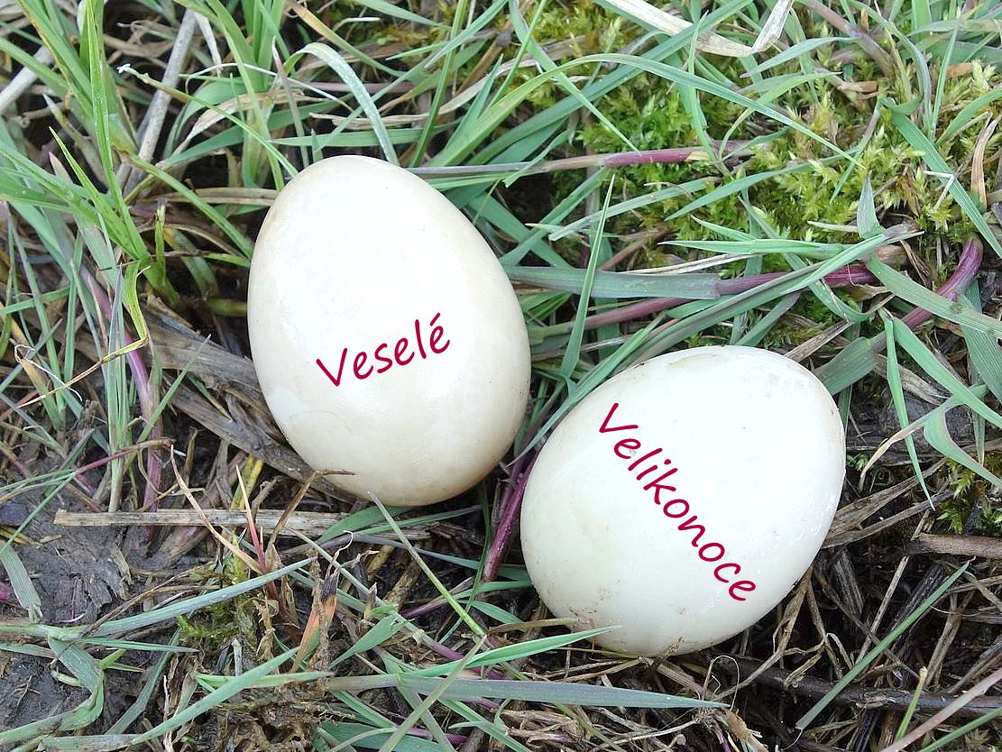 Ta vejce jsem dnes na Velký pátek takhle našel na odlehlém místě v mokřině při mých cyklotoulkách. Až na ten nápis samozřejmě! Jak se tam dostaly, je mi záhadou... Že by nějaká symbolika?