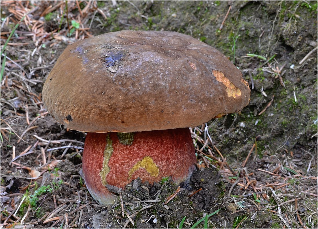 Růst hřibovitých ve vyšších polohách startuje hřib kovář (Boletus erythropus). Úvozová cesta.