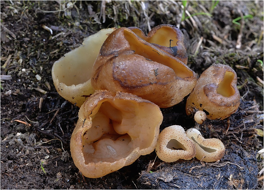 Na hromadě hnoje rostla tato řasnatka asi vosková (Peziza sp.)