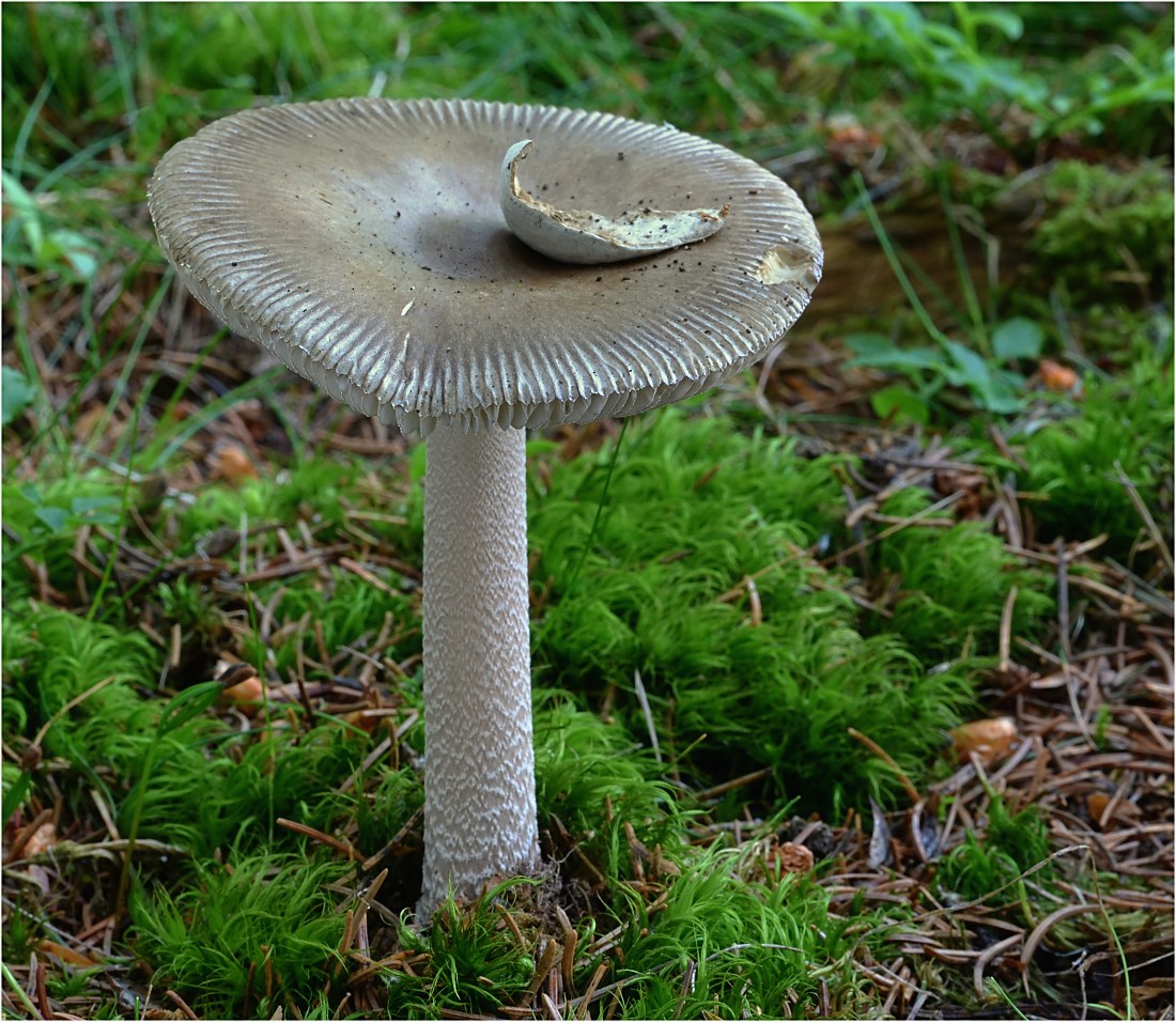Mezi kováři se vyskytla tato muchomůrka pošvatá (Amanita vaginata).