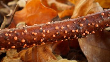 Rážovka rumělková (Nectria cinnabarina) přesněji její anamorfa (nepohlavní stadium), pro kterou se někdy používá jméno Tubercularia vulgaris.