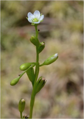 Mým cílem bylo vyfotit její květ a nebylo to jednoduché. Na předchozím snímku, podle hmyzích zbytků, lze usuzovat, že rostlinka na daném stanovišti žije v přepychu.