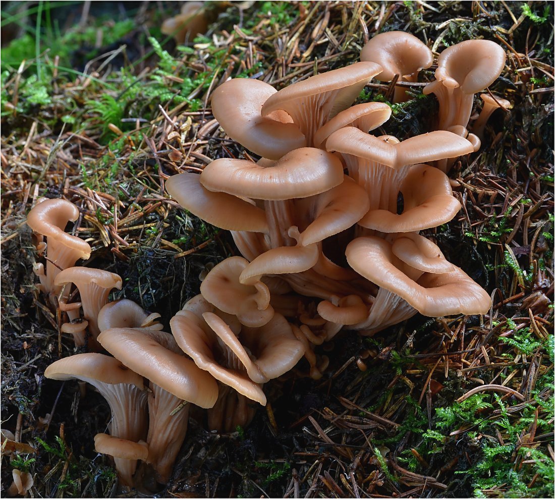 Smíšený jehličnatý les, pří slídění za hříbky, nález houžovce hlemýžďovitého (Lentinellus cochleatus).