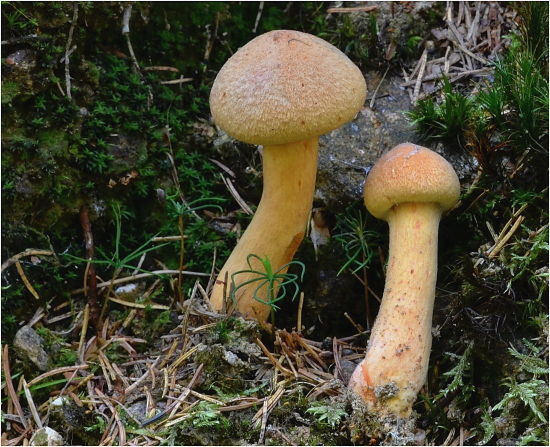 Na okraji smrkové mlaziny rostla skupinka slizáků švýcarských (Chroogomphus helveticus).