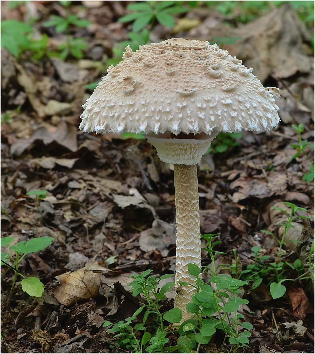 Jedna mladá a svěží bedla vysoká (Macrolepiota procera).