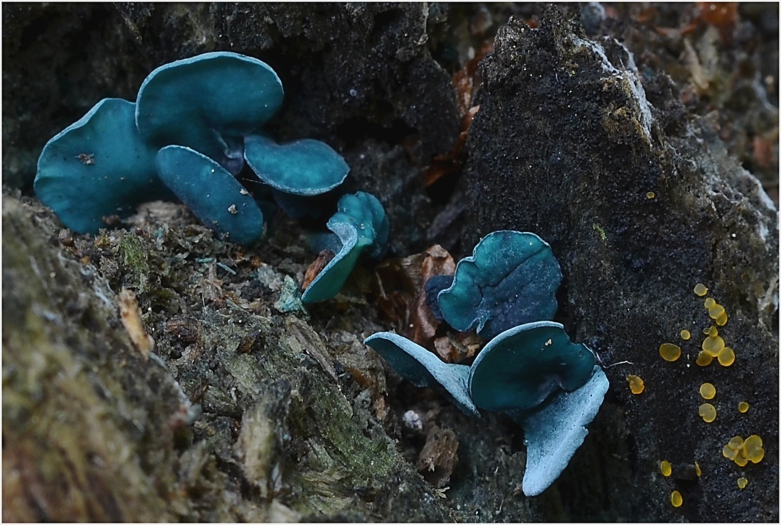 Opětovný nález zelenitky (Chlorociboria sp.), tentokráte z bukové větve.