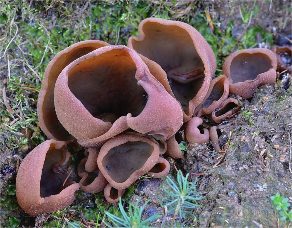 Na lesních cestách výskyt většího množství této řasnatky (Peziza sp.)
