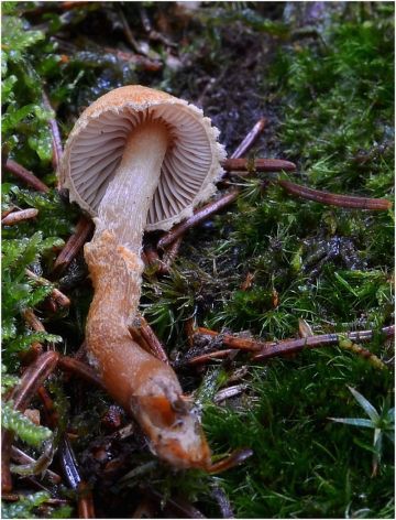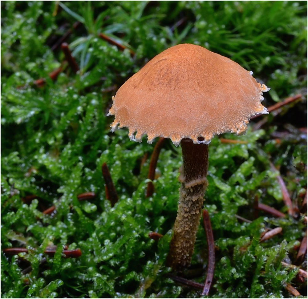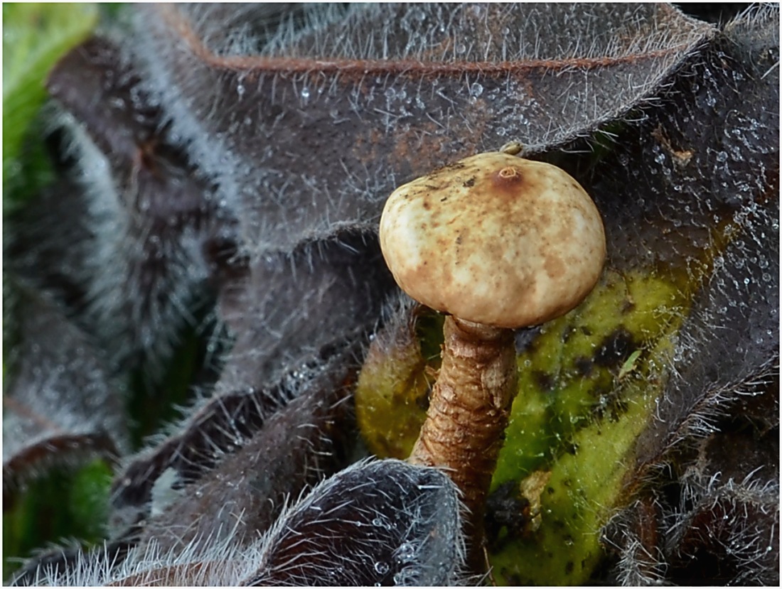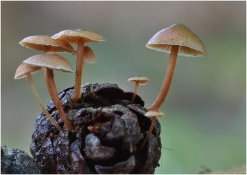 Nezmar na borové šišce, penízečka drobnovýtrusá (Baeospora myosura).