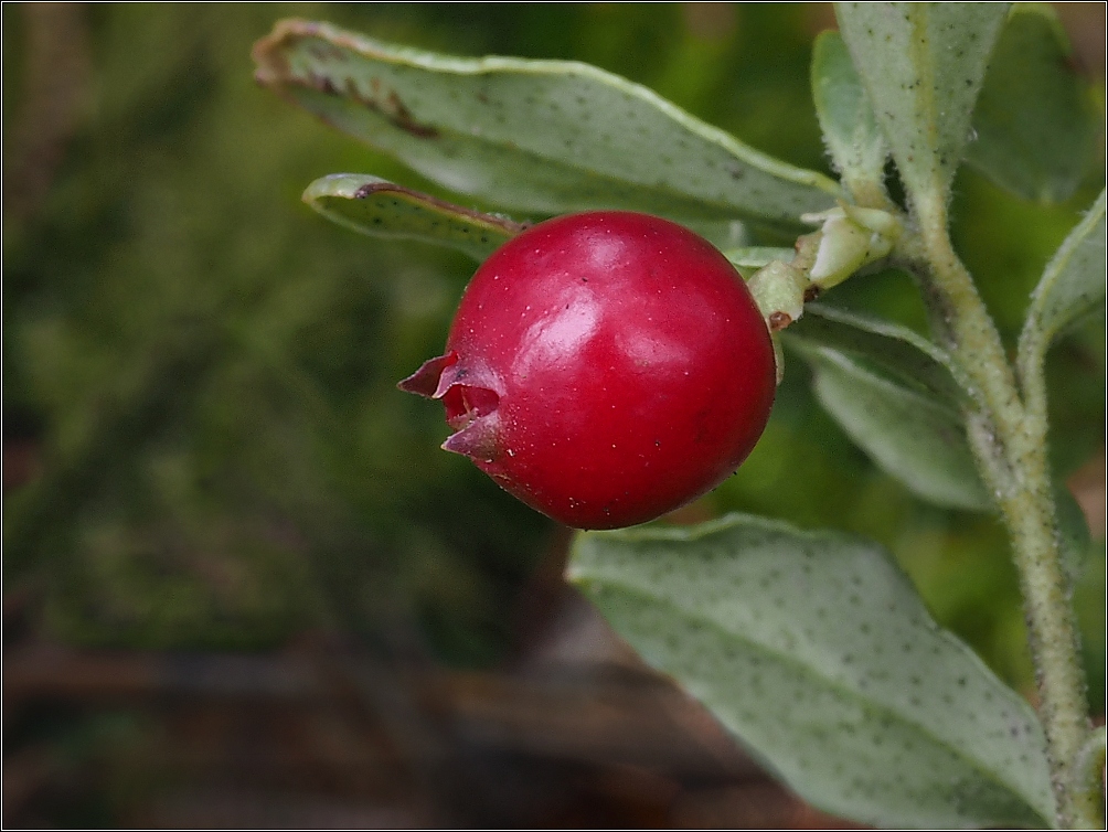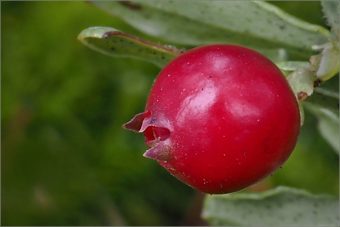 Klikva?Asi ne,ta je na delší stopce,brusinka?Nebo mišpule,nedá se poznat velikost.