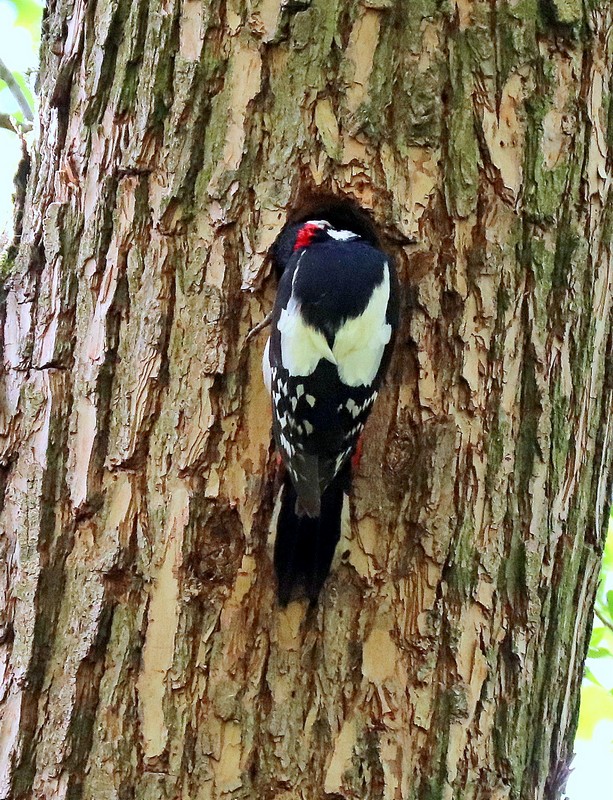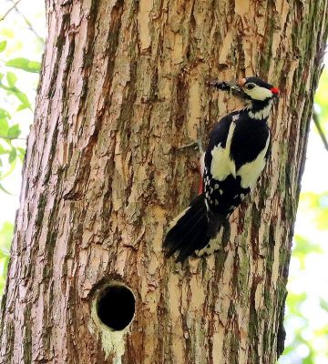 Cestou jsem zaslechl známé vrčení na stromě, od mláďat datlů. Tak jsem si počkal, až přiletí krmit.