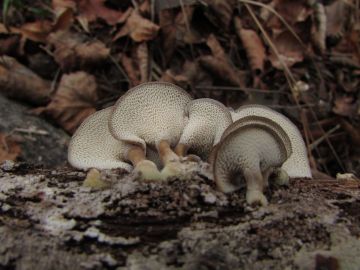 Polyporus brumalis - choroš poloplástvový - středně velké póry, pokud by si některý z těchto chorošů zasloužil označení zimní, pak on, roste zhruba od října do listopadu až prosince, a pak na začátku roku zhruba od února do dubna, dá se říct, že výskytem se na lokalitách s ch. brvitým střídají