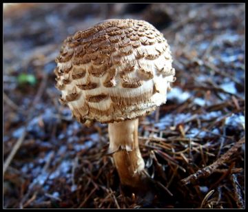 Další fotka je přesně měsíc stará - 27.11. Bedla červenající. Byla ještě ve skvělé kondici, i když úplně mražená.