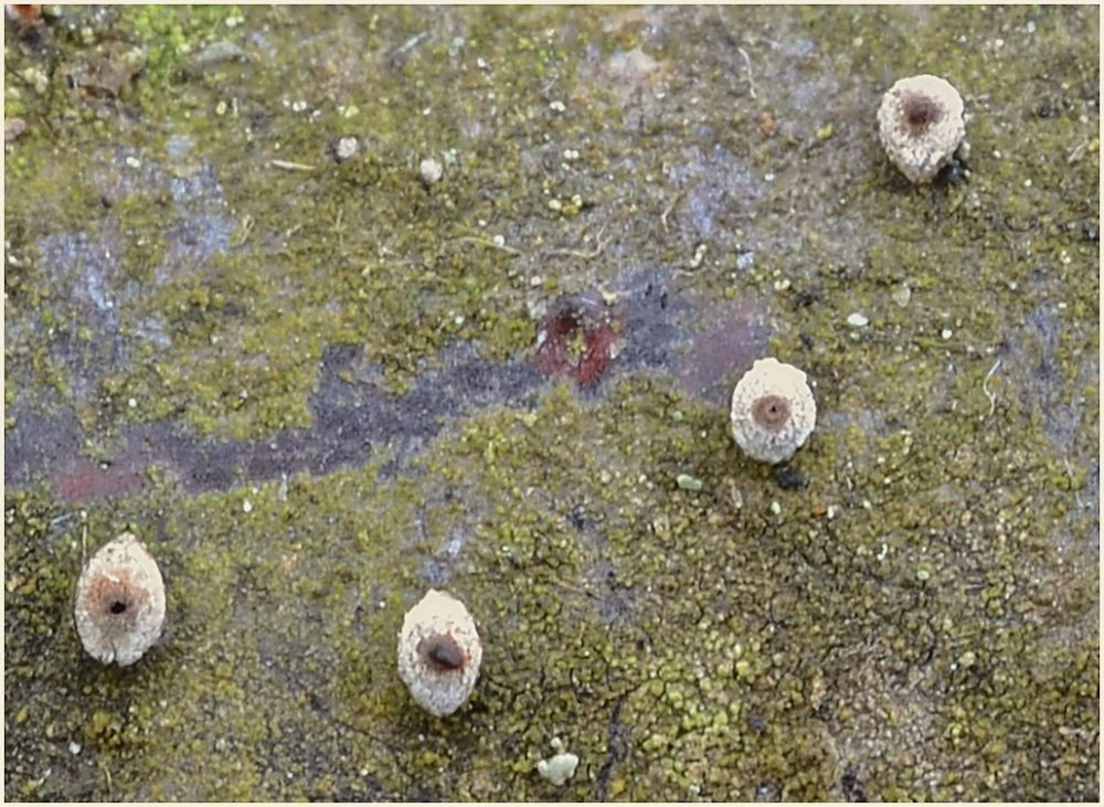Krom penízovky smrkové se lokálně nechá najít také helmovka šiškomilná (Mycena strobilicola).
